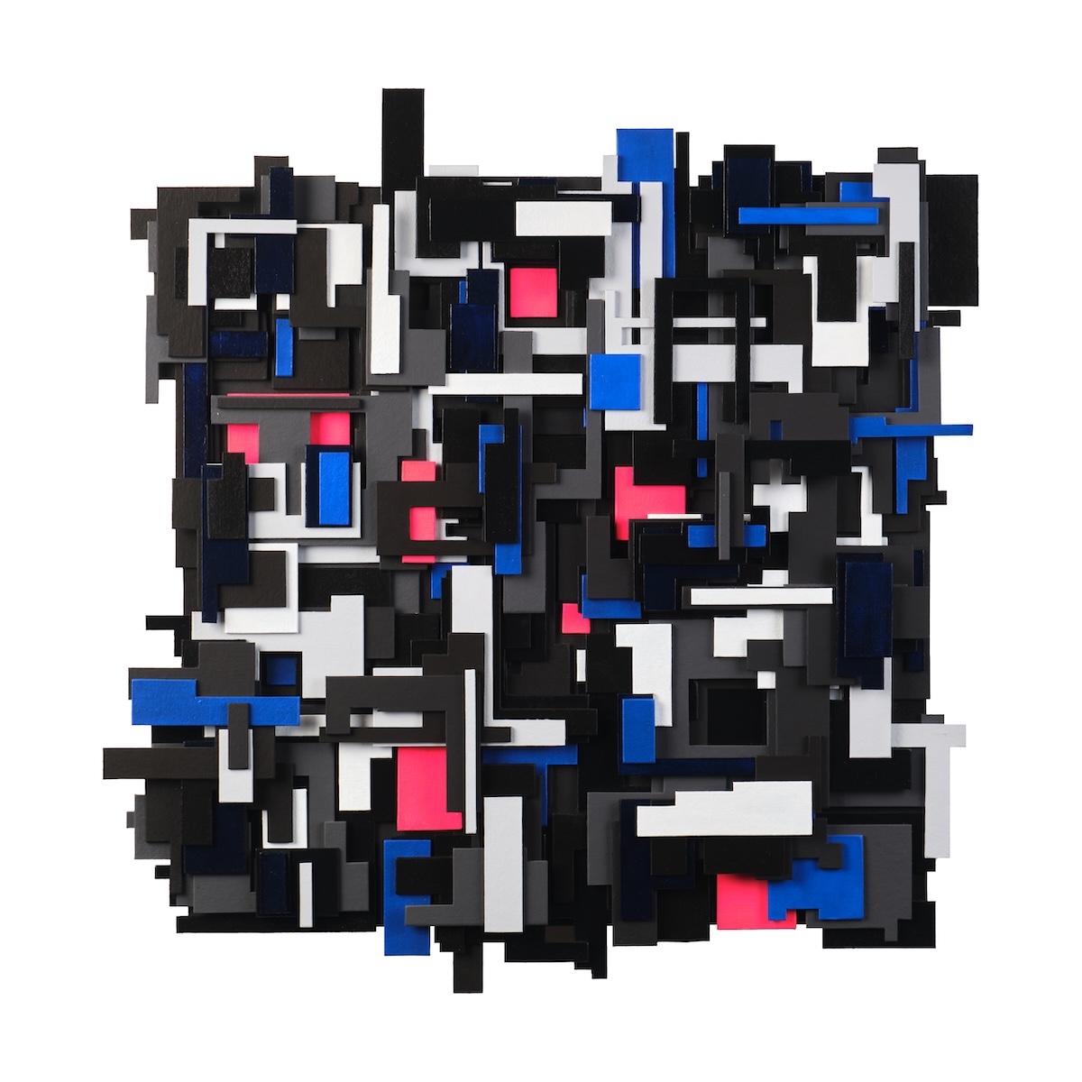 La propuesta en Madrid se compone del texto / “Superposiciones. La visión de un orden propio”, la escultura “Horizonte de Indiferencia. Volúmenes 07” y tres relieves de la serie “Superposiciones. Paisaje”.